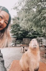 As we moved on from my dream space, we came upon the open-air bath with another family of capybaras! This area wasn’t an interaction area but it was so wholesome to see one capy chilling in the bath.